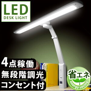 角度調節しやすい4点稼働!★クーポンで200円OFF★【送料無料】 T型 LED デスクライト 幅68 ワイド 約1200ルーメン 目に優しい 無段階調光 コンセント付 省エネ 長寿命 卓上ライト 省エネ クランプ LEDデスクライト 学習机 ライト コンセント コンセント付き