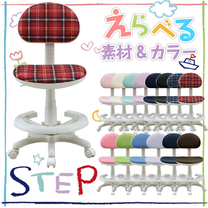 学習回転チェア ステップ5 素材とカラーが選べる 全14種 脱着式足置きリング ファブリック/合皮 無地/チェック柄/PVCレザー 学習チェア/回転チェア/勉強椅子/学習椅子/キッズチェア【送料無料】