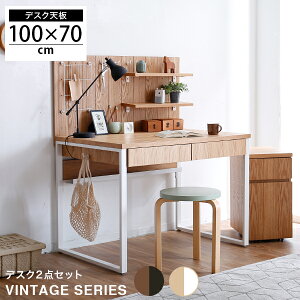 デスク パソコンデスク 学習机 棚 机 幅100cm 奥行70cm 机 ワゴン サイドチェスト 棚付き 引き出し付き フック 有孔ボード 飾り棚 遊び心 デスクセット フルオープン引き出し 作業机 ナチュラル おしゃれ