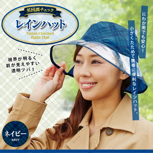 英国調チェックレインハット A-03 〈 レインハット 雨よけ 帽子 撥水 雨具 折りたたみ コンパクト 夕立 雨 〉FM