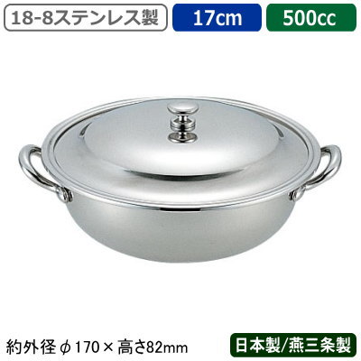 ブイヤベース 鍋 日本製 燕三条18-8ステンレス製 ブイヤベース鍋 17cm 500cc業務用 家庭用 両手鍋 卓上鍋 洋風鍋 蓋付き ふた付き 洋風 高級感 豪華 おしゃれ 魚介 海鮮料理 寄せ鍋料理 ホテル レストラン 西洋料理店 飲食店 フランス料理 ディナー UK