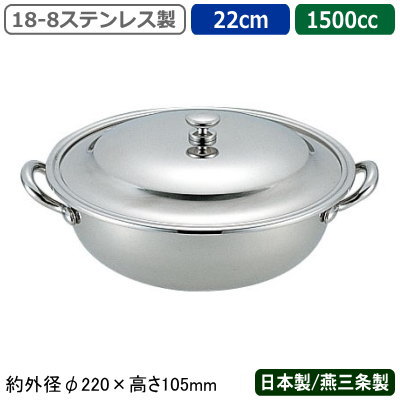 ブイヤベース 鍋 日本製 燕三条 送料無料18-8ステンレス製 ブイヤベース鍋 22cm 1500cc業務用 家庭用 両手鍋 卓上鍋 洋風鍋 蓋付き ふた付き 洋風 高級感 豪華 おしゃれ 魚介 海鮮料理 寄せ鍋料理 ホテル レストラン 西洋料理店 飲食店 フランス料理 ディナー UK