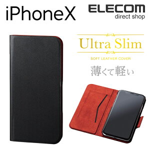 エレコム iPhoneX ケース UltraSlim 手帳型 ソフトレザーカバー 薄型 磁石付 スリープ対応 ブラック PM-A17XPLFUPBK
